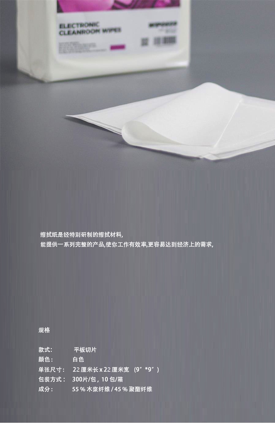 2、有20年以上制造、销售工业、电子产业专用擦拭纸/布产品的丰富经验;专业无纺布材料的应用,并库存众多的不同材料,以满足不同客户对材料的需求选择