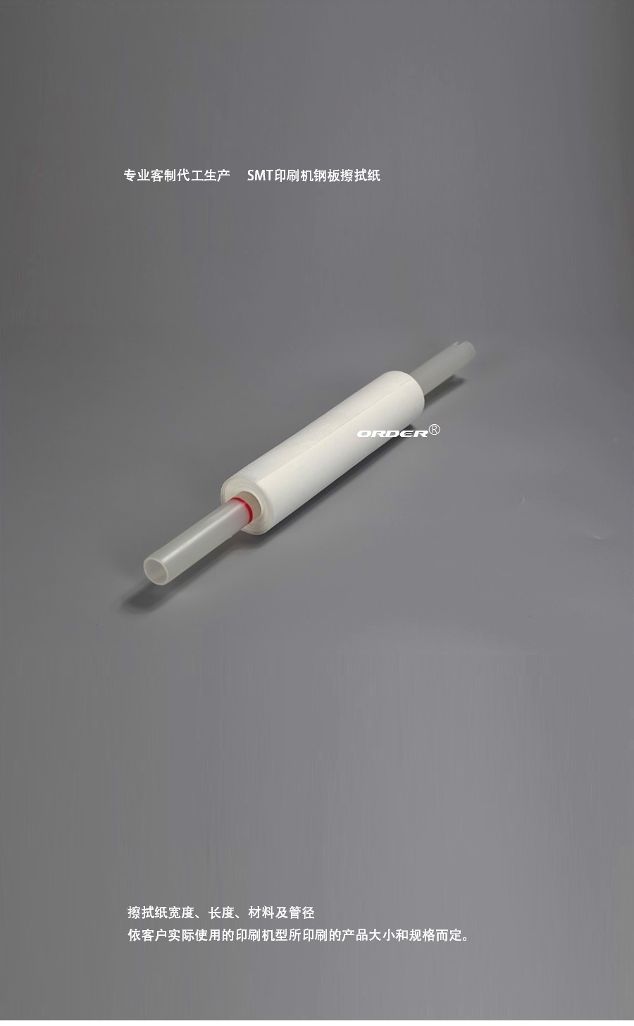 SMT擦拭卷纸由无尘纸料和内衬管(纸管、胶管)构成,内衬管长度、内径、外径,无尘纸料宽度、长度(可依客户要求定制)。