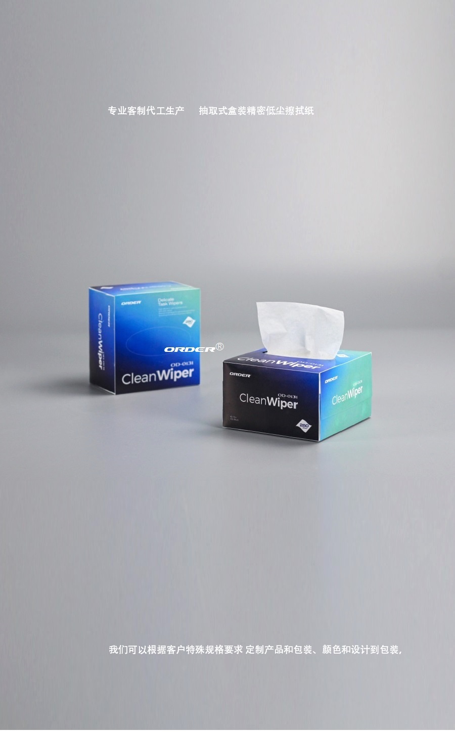 抽取式盒装精密低尘擦拭纸 OD-34155。这是一款在工业、电子、实验室等领域非常常用的专业擦拭产品。
