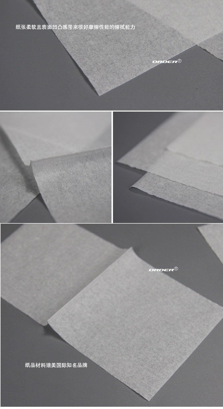 - 高吸液性和强韧耐用: 采用优质木浆制成,具有良好的吸水、吸油性能。纸巾本身湿强度高,擦拭时不易破裂、掉絮,不易留下纸屑。
