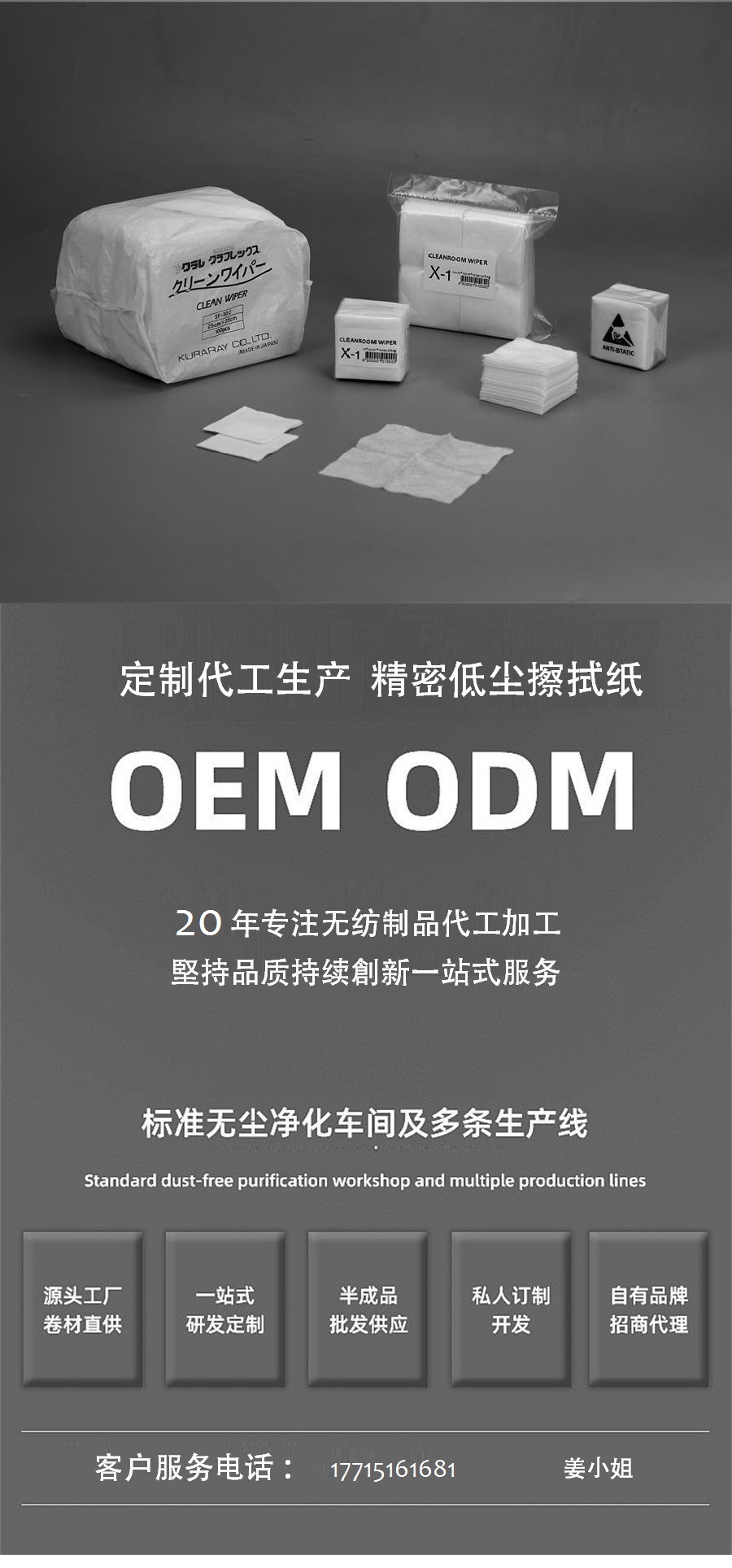 苏州欧德无尘材料有限公司成立于2006年,总部位于苏州市,是一家专注于无纺布清洁擦拭产品研发、生产与销售的企业。公司拥有12,000平方米现代化生产基地,通过ISO9001:2008质量管理体系认证,产品获SGS.FSC权威认证,服务网络覆盖30余个国家,为工业制造、电子光电、医疗护理及餐饮服务等领域提供专业化擦拭解决方案。