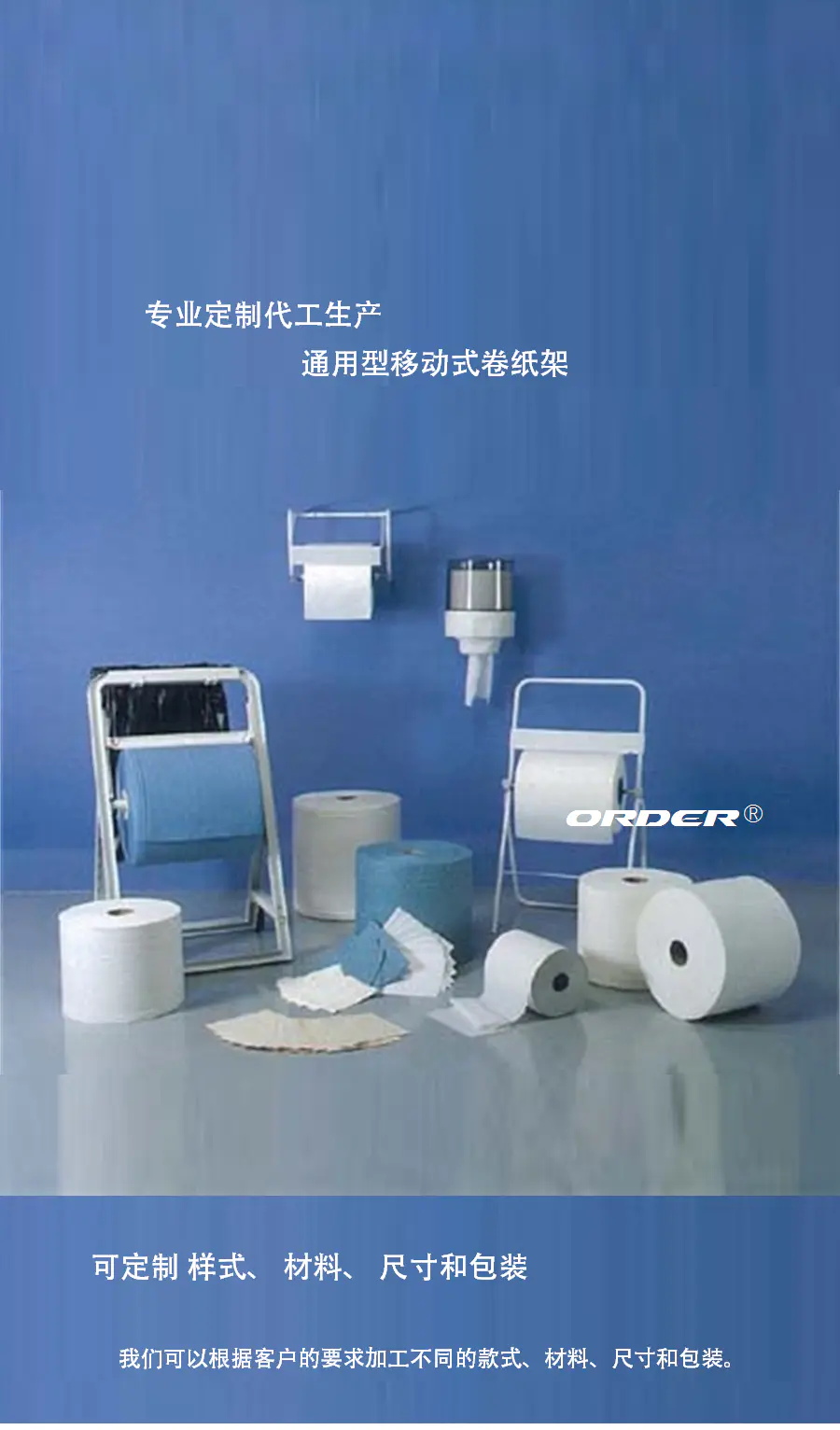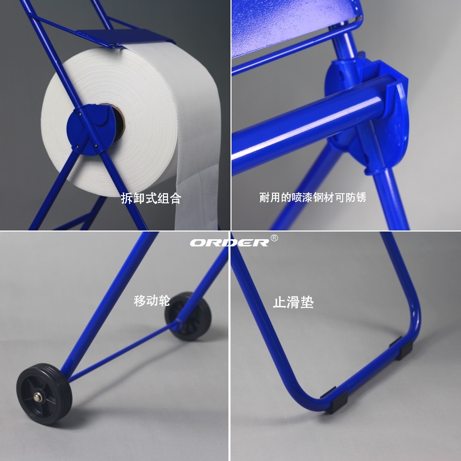阅读更多产品描述 工业大卷式擦拭纸落地支架 型号:OD-100移动式落地支架;白色金属材质。适用于大卷装纸安放使用。 卷装纸通用型。