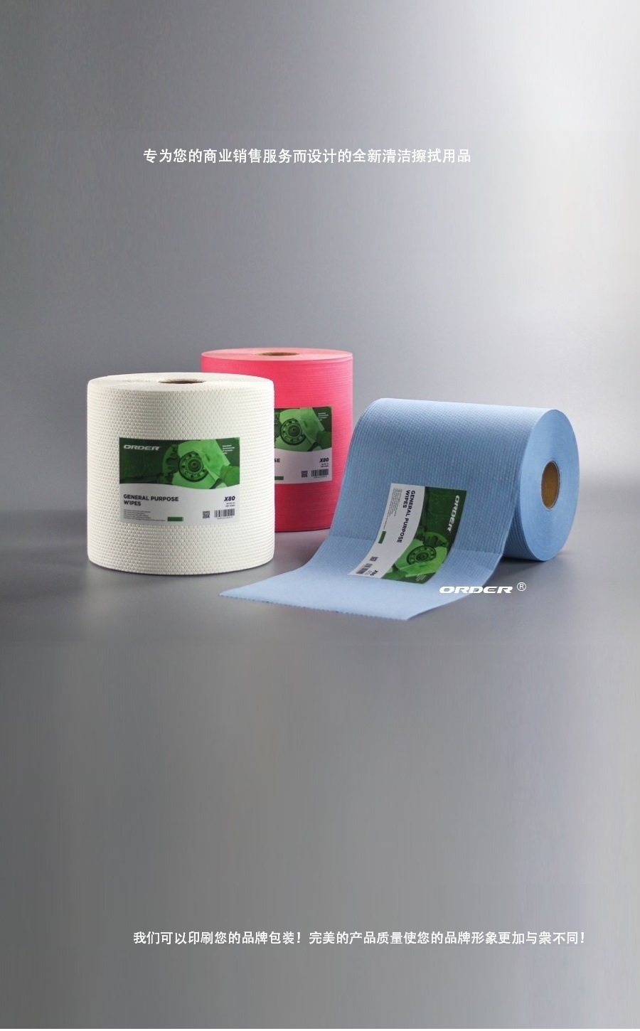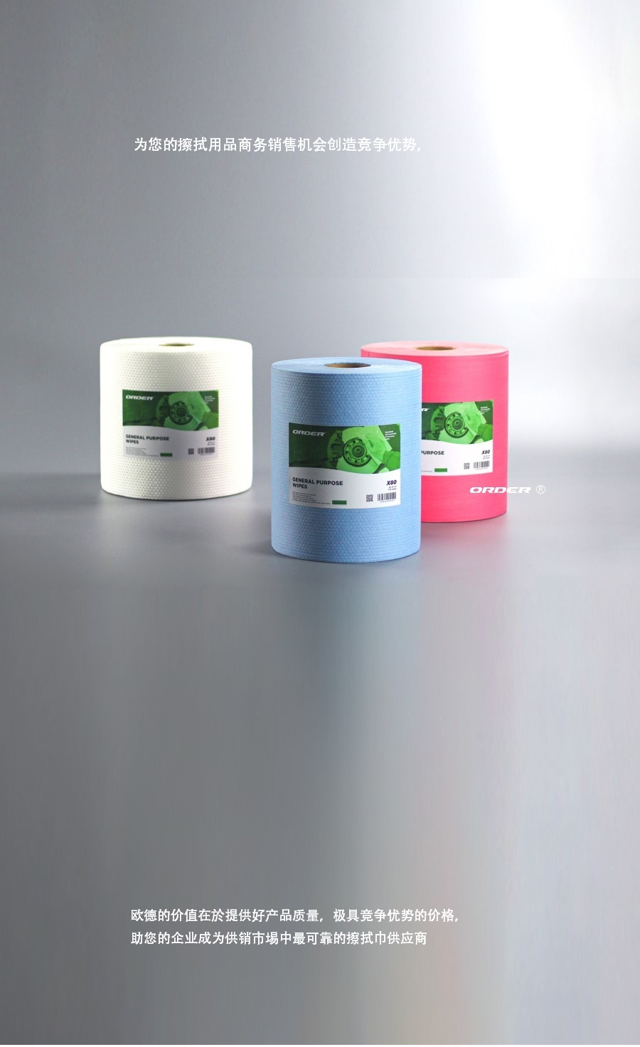 ORDER欧德公司提供新科技产品,经高压、高温的工业级高效擦拭布提供了抹布与 一般擦拭纸难以比拟的擦拭效果,确保擦拭过程安全不刮伤,它低纤维尘屑的特性简化工业流程,安心使用的同时也增加了效率。