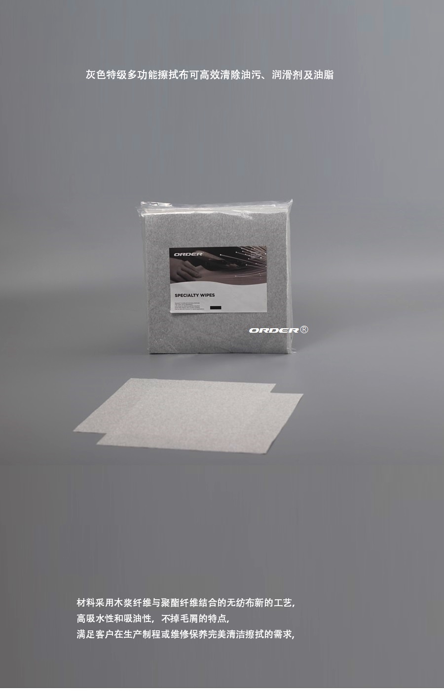 该灰色无纺布材料采用高吸水性与强韧质地设计,对油污、油脂、润滑剂及日常污垢轻松应付。