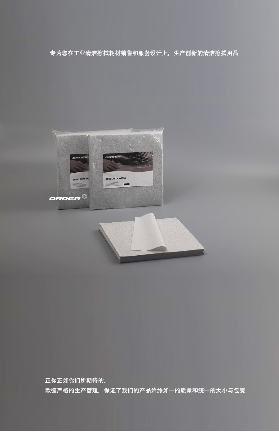 阅读更多可定制尺寸 我们可以根据您的要求定制产品和包装,从材料、重量、尺寸、颜色和设计到包装。 描述 ORDER 欧德公司提供 新科技产品 ORDER欧德公司提供新科技产品,经高压、高温的工业级高效擦拭布提供了抹布与 一般擦拭纸难以比拟的擦拭效果,确保擦拭过程安全不刮伤,它低纤维尘屑的特性简化工业流程,安心使用的同时也增加了效率。 ORDER欧德公司新科技产品高效能多用途擦拭布是由进口...