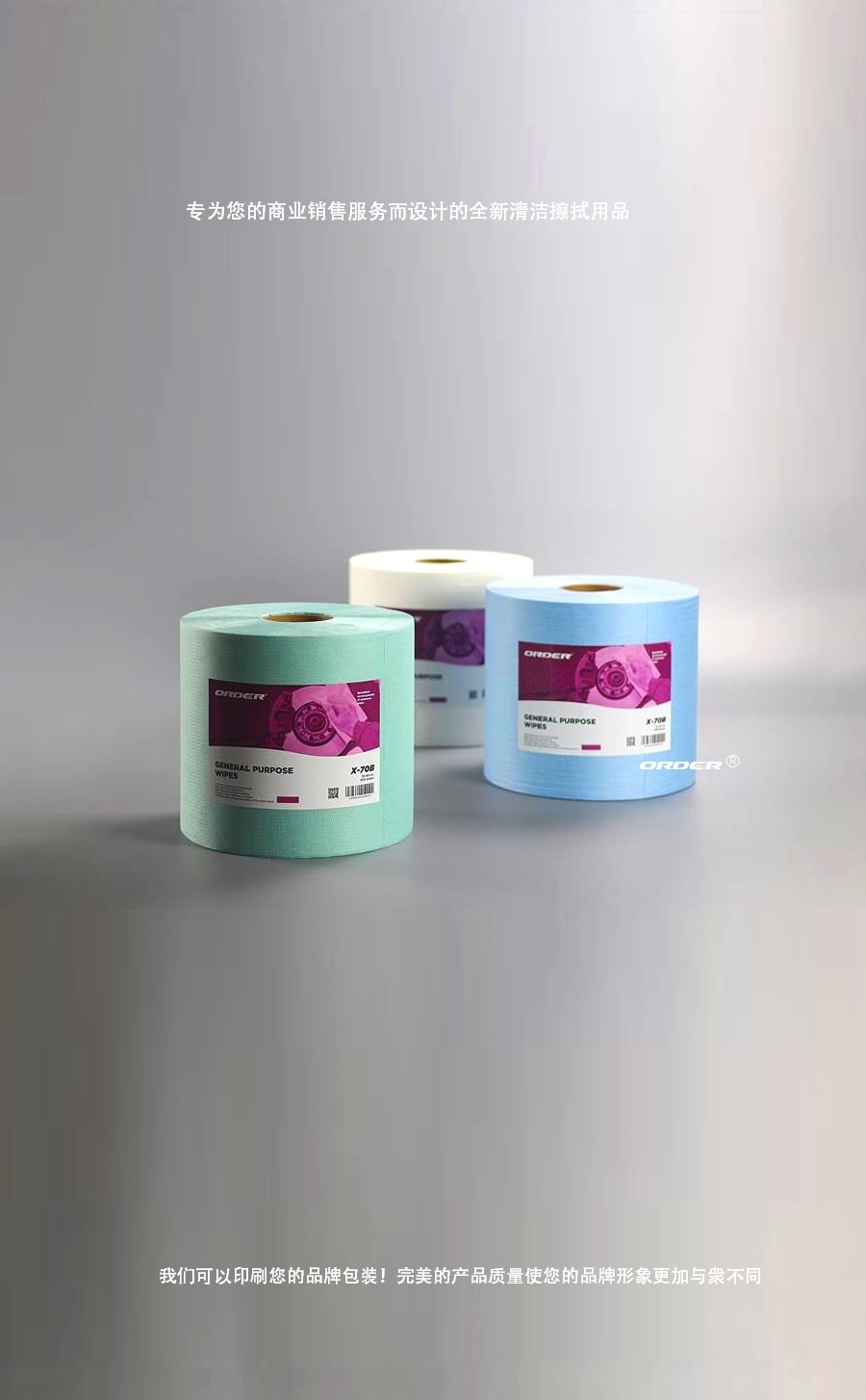 ORDER欧德公司提供新科技产品,经高压、高温的工业级高效擦拭布提供了抹布与 一般擦拭纸难以比拟的擦拭效果,确保擦拭过程安全不刮伤,它低纤维尘屑的特性简化工业流程,安心使用的同时也增加了效率。