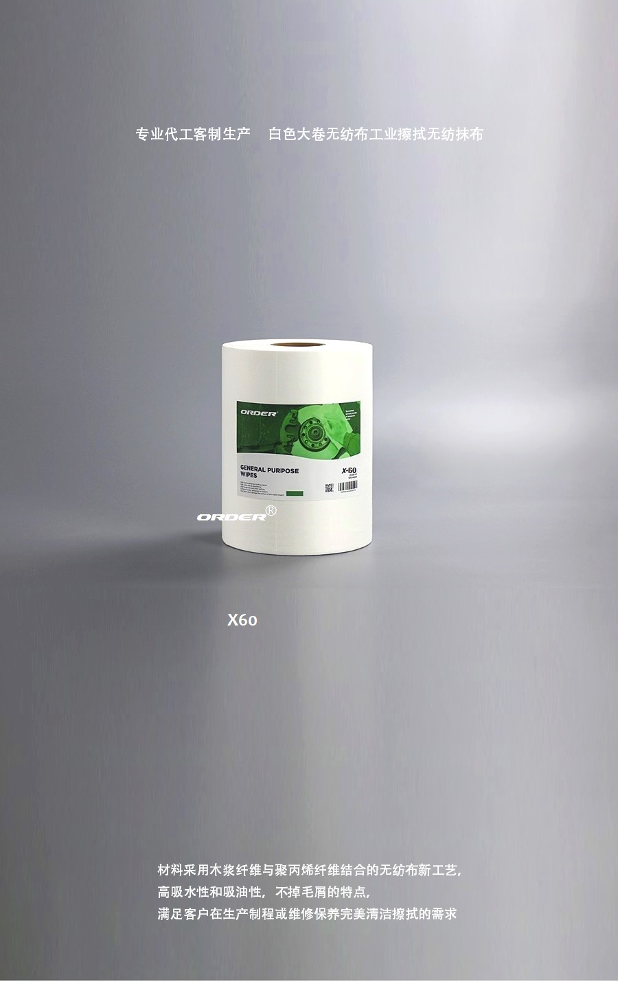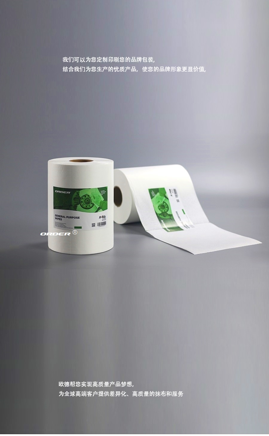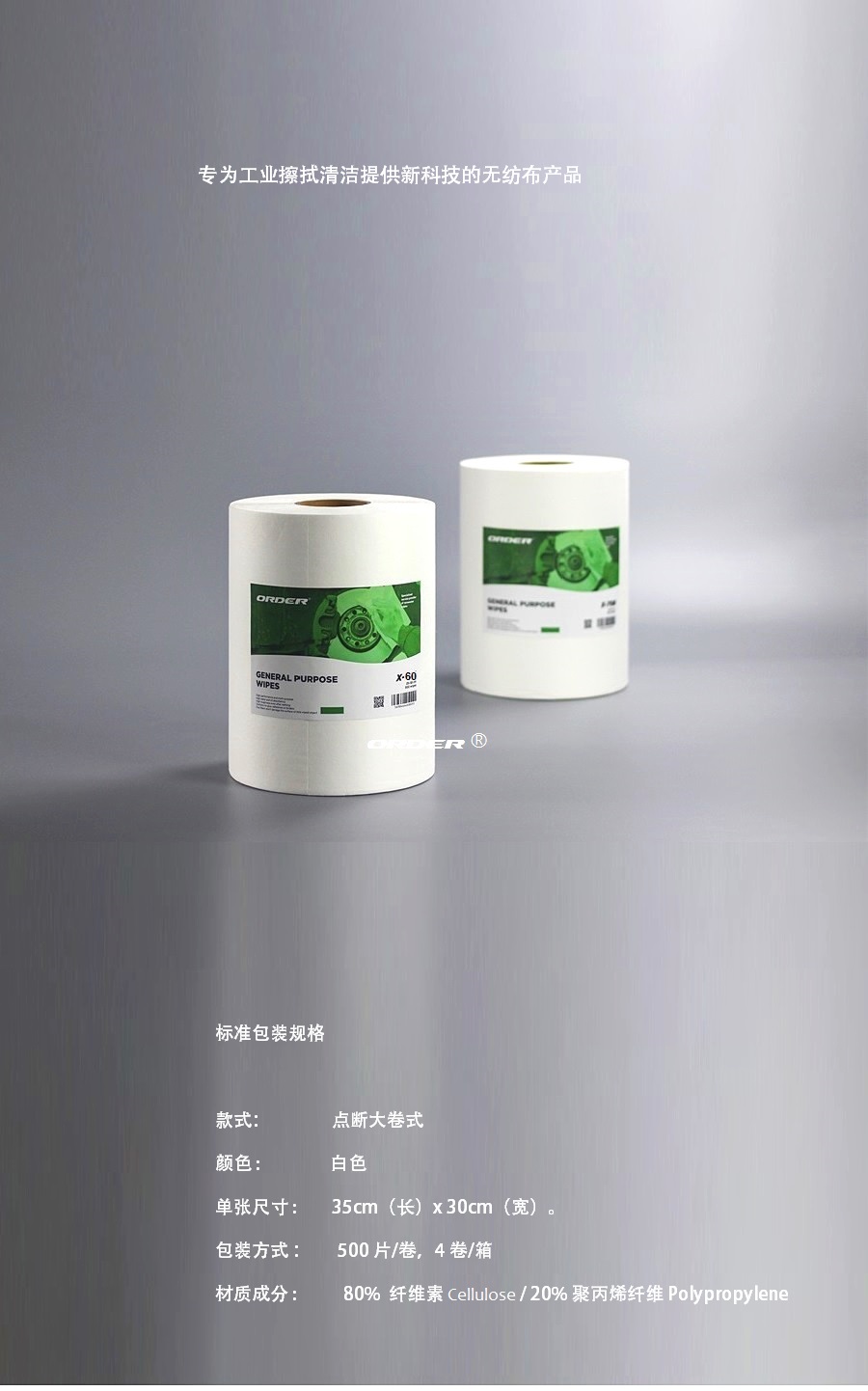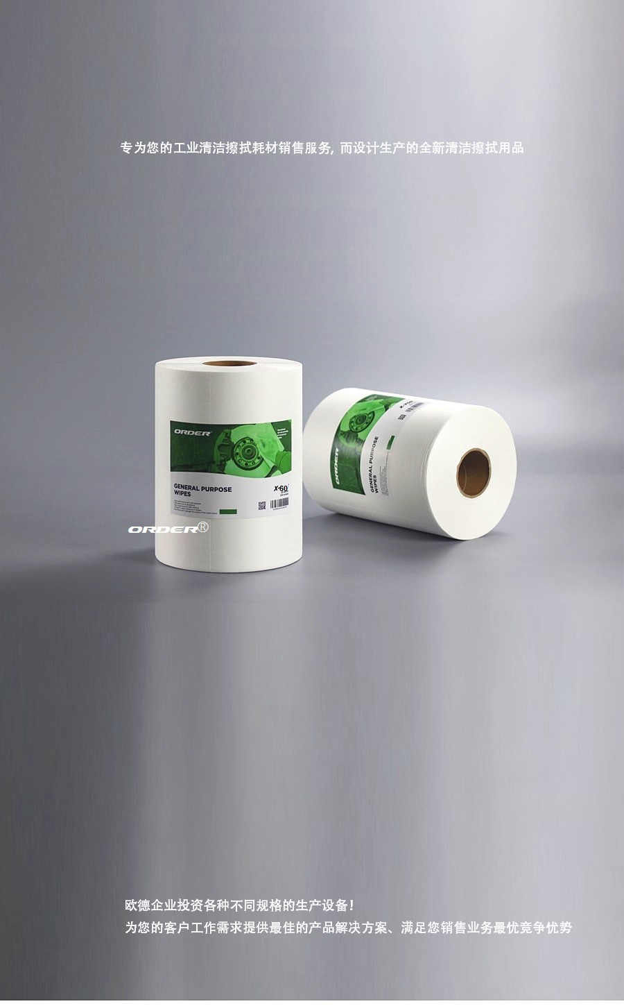 ORDER欧德公司提供新科技产品,经高压、高温的工业级高效擦拭布提供了抹布与 一般擦拭纸难以比拟的擦拭效果,确保擦拭过程安全不刮伤,它低纤维尘屑的特性简化工业流程,安心使用的同时也增加了效率。